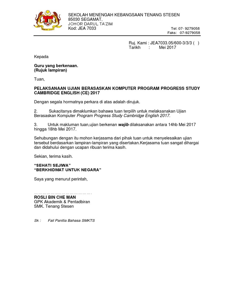 Surat Tidak Hadir Ke Sekolah Atas Urusan Keluarga Dan Sebagainya Sekolah Surat Sekolah Menengah